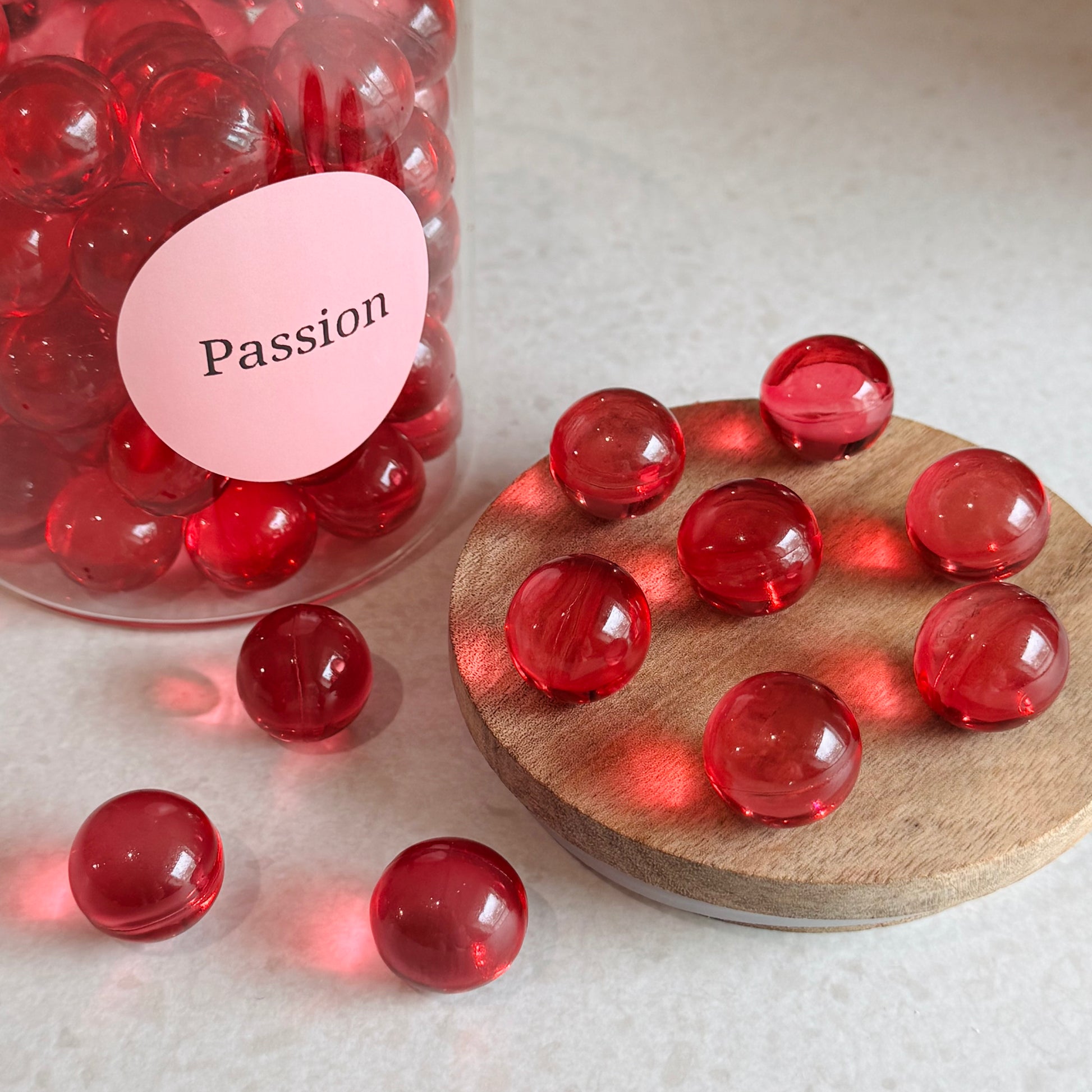 Offrez à votre bain une touche de raffinement avec nos perles d’huile en forme ronde, parfumées à la Passion.
